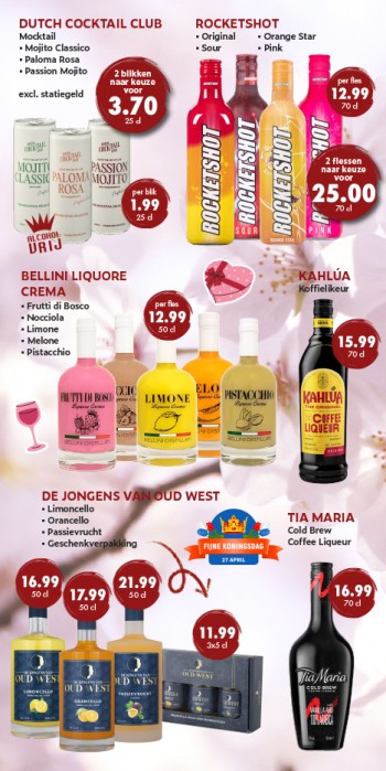 De komende weken staan de meest geliefde Hollandse feestdagen op de kalender: Koningsdag, Bevrijdingsdag en Moederdag. Deze speciale gelegenheden vragen om feestelijke drankjes en bijzondere cadeaus. In onze slijterij hebben we een aantal mooie aanbiedingen voor je samengesteld, zodat je optimaal kunt genieten van deze feestdagen.